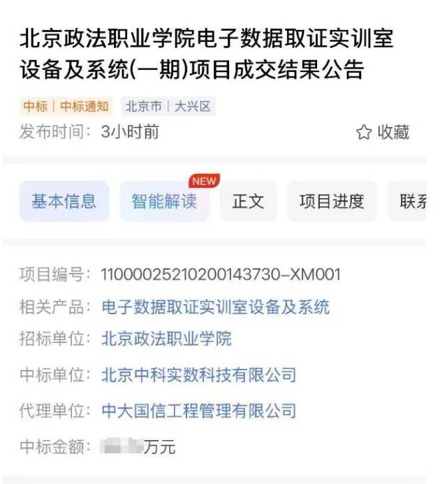 近日,广州软件院孵化企业中科实数电子数据取证产品团队成功中标北京政法职业学院电子数据取证实训室设备及系统(一期)项目。这次中标表明中科实数在电子数据取证产品研发领域的技术实力和解决方案获得用户认可。