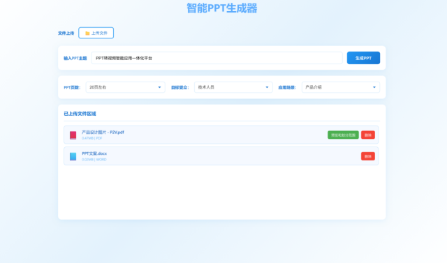 - 让知识传播更高效、更智能 -建设背景传统的PPT制作与视频转化过程繁琐、耗时耗力,尤其在企业宣传、教育培训等场景中,视频内容的互动性与个性化程度往往不足,大大降低了宣传、教育、培训等工作的效率。为此,广州软件院人工智能实验室针对性推出了“琅博PPT多模态AI制作及转换工具”,面向政府、企业、学校、医院等多类单位,赋能高效宣传与培训,助力相关工作高效落地。