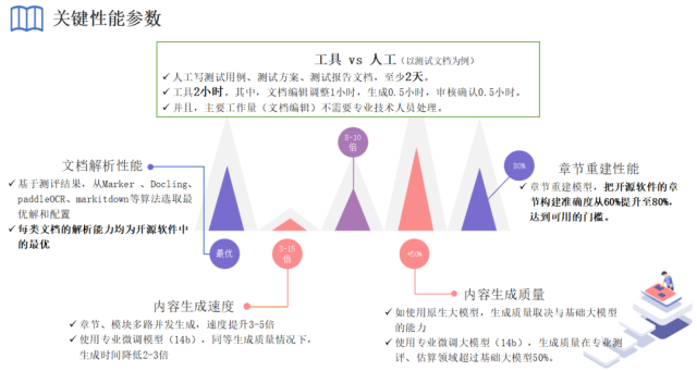主要功能文档解析与章节重建:集成先进文档解析模型,可对图像文档进行表格结构、内容及版面布局分析,结合OCR字符识别等算法精准提取信息。通过自主研发的章节重建模型构建全篇章、节、列表的层次结构,将章节构建准确度从60%提升至80%,节省人工调整的时间;