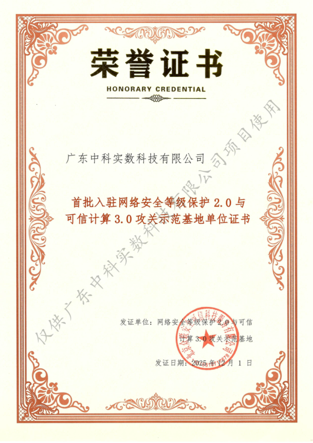 论坛现场举行了“自主可信计算联合攻关组”揭牌仪式,专家共同为攻关示范基地揭幕,标志着产学研用协同创新机制正式启动。广州软件应用技术研究院(简称:广州软件院)孵化企业广东中科实数科技有限公司(简称:中科实数)受邀成为网络安全等级保护制度2.0与可信计算3.0攻关示范基地入驻单位。
